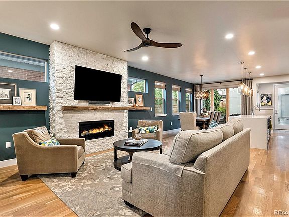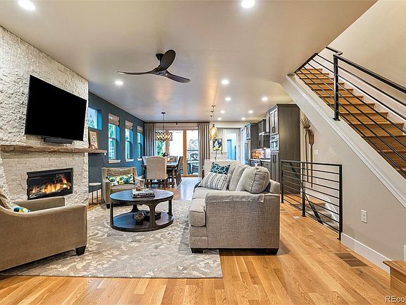 Inside, you'll find 4 bedrooms providing ample space for your family & guests. The basement is adorned with a kitchenette with a full size fridge & dishwasher, creating the ideal setting for relaxation. The 3rd floor is set up for entertaining with your designer wet bar, bonus room & adjoining roof top deck. The rooftop patio offers a fantastic spot to unwind & enjoy the wonderful mountain views, while the turfed back yard provides a low-maintenance oasis for outdoor activities & relaxation. It's the perfect combination of convenience & tranquility. The laundry room (not closet!) has built-ins & counter top for extra functionality. This Smart Home includes: 4 cameras, doorbell camera, Ecobee Thermostat, Rachio smart sprinkler system, Lutron Lights and smart Rear Shade.