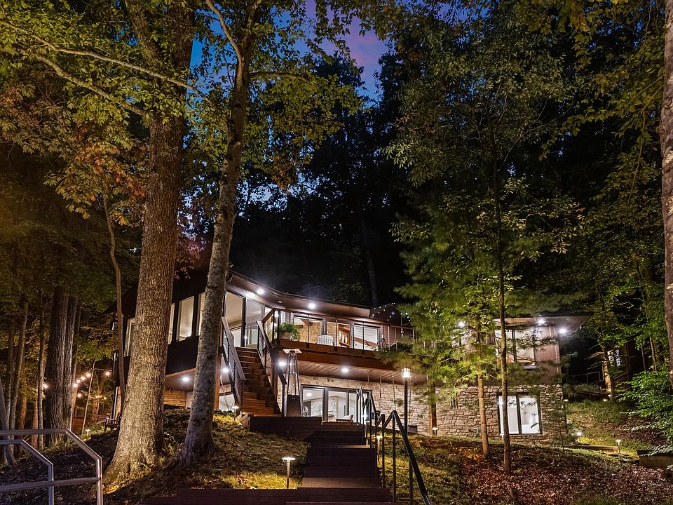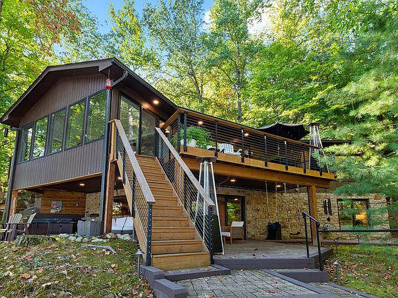 Gorgeous Custom 4 BR/4 Bath home at LAMB LAKE on Private CuldeSac. Home has completely been updated/remodeled with luxury contemporary finishes in 2021, New Landscape lighting , 3 car Garage w/epoxy floors finished & 40'x28' SF of Rec, Exercise, and/or office space above garage in 2023. Hardwood floors, Gourmet Kitchen w oversized kitchen island, quartz counters, custom cabinets, built ins. Fin Walkout LL with 2 bedrooms / 2 baths and large storage room, Family Room w/ Gas Stone Fireplace. Wet bar located in basement great for hosting and packing for a day on the lake. Sunroom & Windows Galore overlooking Prominent location in a wide cove with amazing panoramic views of Lake.180' Shoreline. Newer Dock w/Sundeck & Boat lift & extra slip!