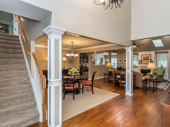 Immaculate, upgraded home on cul-de-sac in desirable Pinnacle! Convenient location with easy access to Brannon Crossing, this 1.5 story, 4BR/ 2BA welcomes you home with an expansive, open layout and gorgeous engineered hardwood plank flooring. Single-story living with the master suite plus two bedrooms on the main floor, you also have an extra bedroom/flex space upstairs which can be used as a loft, dedicated office or exercise area, craft room, etc. Excellent kitchen for cooking with expansive granite countertops, gas stove, and ducted range hood. Eat in the formal dining room or look out over the nicely landscaped, private backyard from the breakfast area. Additional natural light is brought in upstairs with a solar tube and downstairs with skylights. Enjoy sun or shade on the back patio with an Eclipse retractable awning. You will also appreciate the electronic air purifier working behind the scenes to keep you comfortable and the irrigation system. Come see this beautiful home!