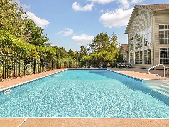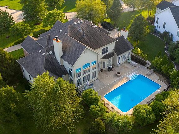Welcome to this stunning 1.5 story nestled on a private 0.6 acre lot in the desirable Lake Saint Louis community including ALL LSL amenities. This executive style home welcomes you with its elegant curb appeal w/ a brick & stone front, circle drive, & lush landscaping w/ irrigation system. Step inside to a dramatic 2 story foyer, formal dining room, & French doors leading to the den. The soaring great room offers a grand 2 story gas fireplace flanked by built-in bookcases & a wall of windows overlooking a private salt water pool, w/gas fire pit all surrounded by landscaping & trees. Entertain in the gourmet kitchen w/custom cabinets, granite countertops, tile backsplash, SS appliances, breakfast bar, workstation, & w/in pantry. The vaulted hearth room features a cozy gas FP w/access to the pool patio. The m/f master suite, 3 additional BR & 2 full baths on upper level. Basement workshop, 3 car oversized side entry garage, fresh paint throughout, new carpeting, & refinished wood floors.