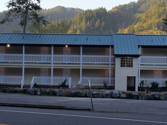 Completely remodeled just finished. Amazing VIEWS Rare Chance to own 8 acres right on the beautiful Umpqua River at the most amazing spot in the county. All the rooms have been completely remodeled in this beautiful 12 room boutique hotel and new management has been brought in to completely turn around this gem of a property. It is a perfect location for weekend getaways and fishermen/ hunters and families. New lobby and new large deck on the river side. All rooms with river views. Guests use the canoes to fish and tour some amazing spots on the river all around the hotel. Hotel has undergone extensive remodeling to upgrade the rooms, new roof, new deck, and extensive landscaping improvements have greatly increased business year over year. Seller may be interested in Seller-Financing to qualified buyer. TURN-KEY! OUTSTANDING VALUE! UMPQUA RIVERFRONT MOTEL PLUS 2 ACRES ACROSS THE ROAD WITH SHOP BUILDING; perfect for RV's, boat storage, etc. LAND, BUILDINGS, FIXTURES, FURNITURE AND ALL EQUIPMENT NEEDED TO RUN 12 UNIT MOTEL. 2 STORY OWNER/MANAGER's APARTMENT WITH WOODSTOVE FOR COZY LIFE ON THE RIVER! Financial info available to serious buyer. Perfect for a 1031 Exchange. Live the Good Life on the beautiful Umpqua River! MUST SEE!