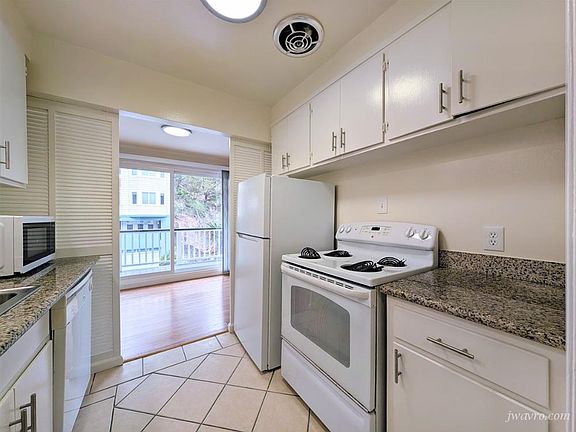 Working fireplacePrivate deckNewer kitchenSeparate dining areaCity and bay viewsHardwood floorsLarge closet
