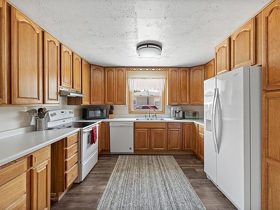 Listed by Jess Skinner, KWBH, 605-490-4094. Move in ready ranch style home with a finished basement in an established west Rapid City neighborhood! *4 bedrooms, 2 bathrooms and 2542sqft *TONS of recent updates include: new flooring, new fixtures, fresh interior paint, remodeled bathrooms, new sump pump and more *Beautiful wood floors and great natural light throughout the main level *The comfortable living room welcomes you in, giving easy access to the kitchen and dining areas, making entertaining a breeze *'U' shaped kitchen with newer appliances, TONS of ceiling height cabinetry and new flooring *Cozy dining area with slider door access to the enclosed 3-seasons porch with large windows on 2 sides *3 bedrooms and 1 remodeled bathroom complete this level *Basement level offers a HUGE family room, with a corner fireplace on one end, and a kitchenette on the other *1 bedroom (ntc for window size), 1 bathroom with walk in shower, a large laundry room with storage space and sink, and a good sized storage/work room complete this level *Outside has an oversized detached 2-car garage with updated electrical, a utility sink and bonus water spigot and plenty of storage space *Fully fenced back yard is the perfect escape- complete with a maintenance free deck that overlooks the beautiful yard, with mature trees, shrubs and planter areas to customize as you wish *Charming curb appeal out front with a maintenance free stoop, spaced window shutters and established spruce bushes.