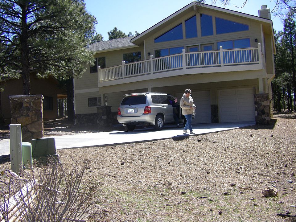Two story: 1st floor - 2 car garage, 2 bedroom, 1 bath, laundry/storage; 2nd floor - Office/den, 1/2 bath, Great room, vaulted ceiling rock-faced & log mantle fireplace, artwork loft, surround sound, north facing window wall, 10' x 35' large deck facing Mt. Elden, natural gas deck BBQ outlet, master bedroom/bath hydrotub, 2 person tile & glass block shower, kitchen: granite counters, natural gas range/oven, refrig/freezer, double sink, knotty alder cabinets w/bottom lighting, pantry, storage cabinet, dinette, inside stairway, integral fire & security system & hard wired cable/internet .