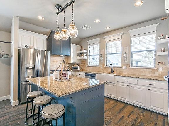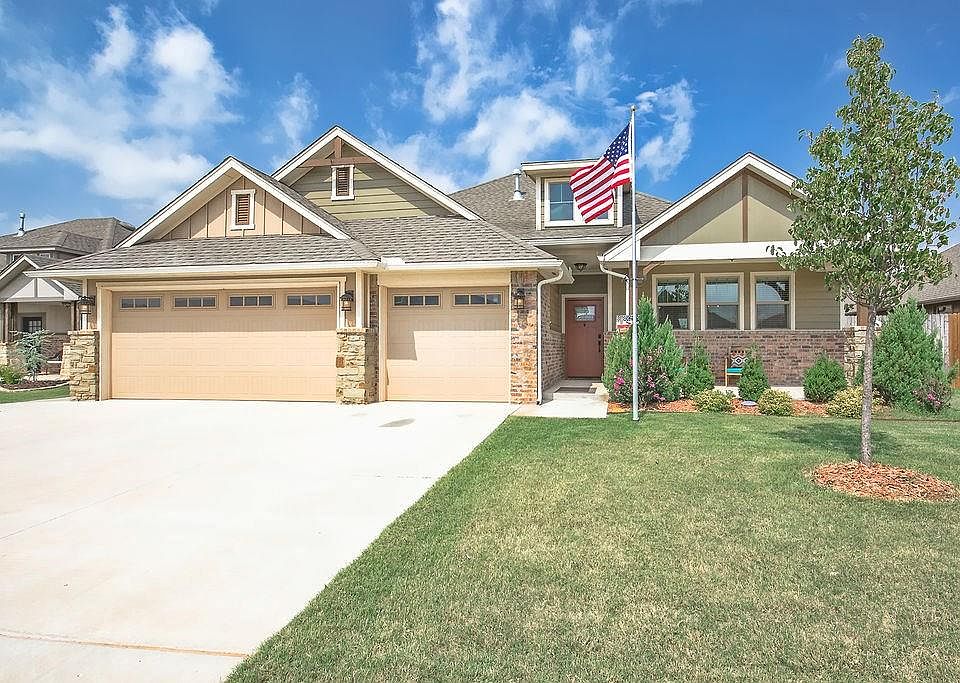Elegant design craftsman style home with many upgrades. Beautiful light and bright kitchen with large windows, 5 burner gas stove, farm sink, granite countertops, and large island with seating. The dining area is open to the kitchen and will accommodate a large table and features a buffet area with storage. The living room features a cathedral ceiling w/wood beam, fireplace & shelves. They have a custom wood-molding accent. Home features a perfect layout with 3 bedrooms, 2 ½ baths and a dedicated study with French doors. The master features a Jetted tub, shower & his/her sinks. The master closet opens to the laundry room. The full bath includes double sinks. The outdoor living space is large and impressive, with a 12 x22 covered patio area. Newer tuff shed with upgraded flooring and shingles. 3-car garage features a storm shelter. Mud room with a bench seat and storage area. Beautiful WOOD FLOORS! You will not be disappointed with the beauty and storage that this house has to offer!