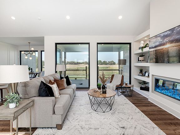 This is the showstopper “Kevin” plan with stairs to lower level located on the side corner of home with full glass walls! This is a 6 bedroom 3 bath home. You’l love the floor to ceiling windows in the vaulted living room. Kitchen is open and has the much coveted window over the kitchen sink looking to front of home. The pantry with double entries runs behind the length of the kitchen, and has 2 glass pocket doors that let in light but yet hide the space. The laundry room also houses a bench drop zone and connects to the spacious master closet. Stunning soaker tub with beautiful glass light fixture is a spa retreat in the primary bedroom suite, along with the walk in seamless glass shower. Bedrooms 2 and 3 are on the opposite side of the house with a hall bath in between. Basement is completely finished with a family room with entertainment wal and 2nd fireplace, wet bar, bath, and 3 more bedrooms! Large covered deck on back to enjoy those lake views! Information deemed reliable but not guaranteed and may change without notice. Specials may not be entirely spread yet on this lot. There is a $250 mailbox key at closing. Room sizes estimated. Information deemed reliable but not guaranteed and may change without notice. Specials may not be entirely spread on this lot. There is a $250 mailbox fee collected at closing. Room sizes estimated. Seller is licensed real estate agent in Kansas.