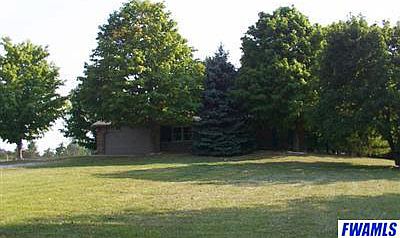 Beautiful Ranch home on 10 acres, 5 wooded, 3 pasture, and pond stocked. Nicely updated with island kitchen, full basement, horse barn and additional 40x27 building. Fenced yard with 13 ft.gazebo, new deck in 2002, fireplace in living room. Only 15 minutes from N. Fort Wayne. Furnace, AC and roof newer.