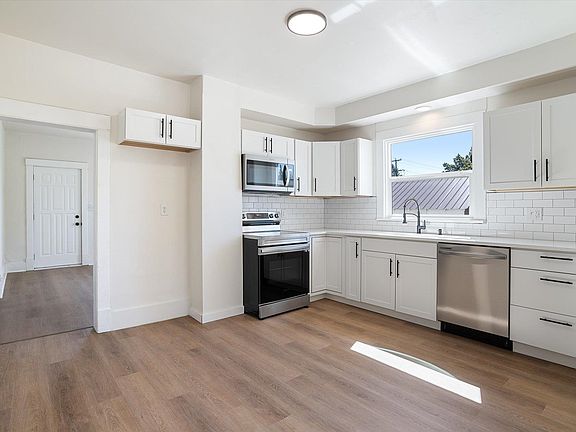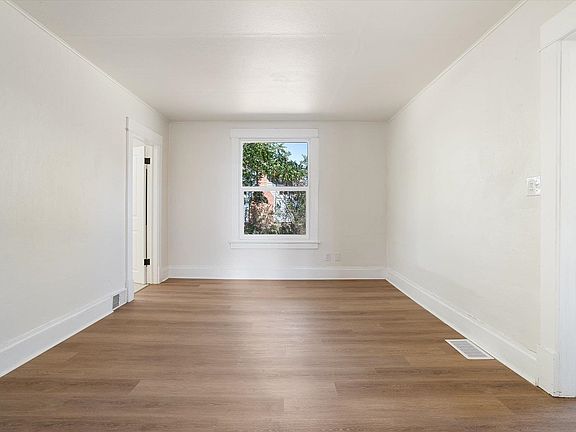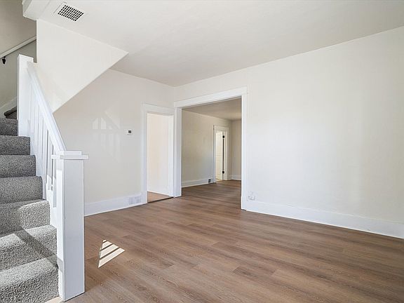 Newly remodeled 3 bedroom, 1 bathroom home with a spacious backyard. This home is freshly painted both inside and out, new flooring and carpet in every room, the kitchen features sleek white cabinets and stainless steel appliances as well as quartz counters. Brand new furnace and new window as well. There is even a dedicated laundry room. Two of the bedrooms are upstairs while the main level features 1 bedroom, a living room and an additional bonus area off of the main living space.