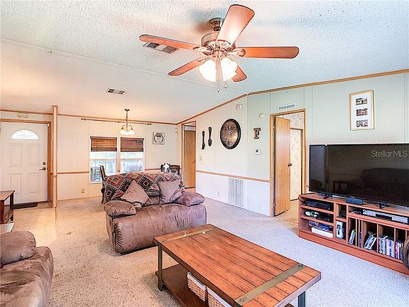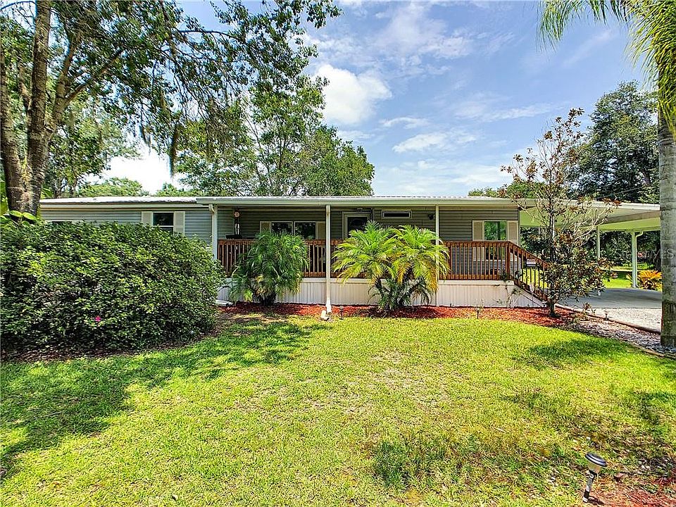 Sitting on over an acre, this charming 3 bedroom 2 bath home has lots to offer. The home offers vaulted ceilings, a Living Room/ Dining Room combination, a seperate dinette area and split floor plan. The Master Bath has a newer shower, walk in closet and custom built vanity. The kitchen comes equipped with new countertops, laminate flooring and stainless steel appliances. The hall bath has a tub/shower combo and a new vanity. The home was re-plumbed in 2017, has a water softener system and a new hot water heater. The AC is 4 years old. There are several areas on the property perfect for relaxing. Enjoy the view of the pond from the comforts of the screened porch, or the lovely landscaped yard while sitting on the covered front porch, or relax on the deck in the back yard that is the perfect spot for barbecuing. There is a 2 car carport, a 24x24 detached garage as well as a 10x20 storage shed. No HOA- plenty of room to park a boat, RV, or any of your other toys.
