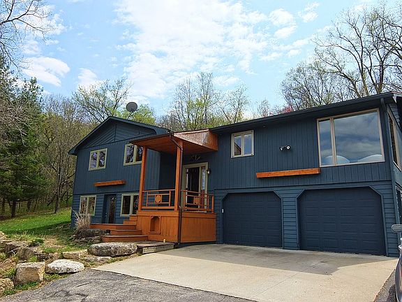Stunning artistic home on 2.31 acres offers a comfortable living space with 3 bedrooms, 2 baths, very open concept for the living room, with a beautiful stone fireplace, the dining area and kitchen. Appliances are included. The views from many windows are amazing. Lovely wood flooring and tile are throughout the home. The home has been lovingly renovated with a newer tankless water heater, wood floors and attractive glass block tiled walk-in shower, with unique claw foot tub.