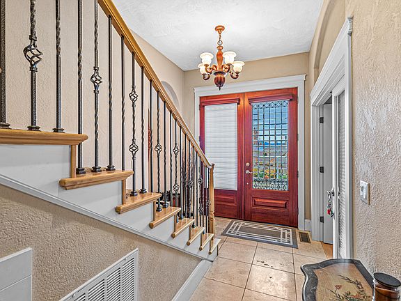 Nestled in East Medford's prestigious neighborhood, this stunning 4-bedroom home with an office offers panoramic views and direct access to Roxy Anne's natural beauty. Located on a quiet street, it opens onto trails through a backyard gate, perfect for enjoying nature from the covered patio or second-story deck. Inside, luxurious finishes include 9-foot coffered ceilings and rich hardwood and tile flooring. The upstairs boasts two master suites; the main features a stone shower, jetted tub, walk-in closet, and scenic views, while the second has a walk-in closet and space for creative projects. The gourmet kitchen, with double ovens, a cook island, and breakfast bar, caters to the chef at heart. Discover the elegance, comfort, and seamless blend of luxury and nature in this exceptional East Medford home.