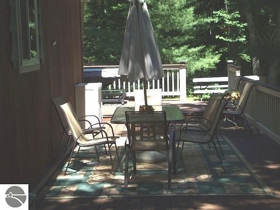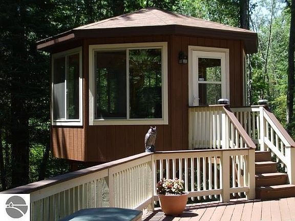 Very well kept adorable 3+ bedroom chalet far enough from town for privacy, but close enough to town for convenience. 2 additional bedrooms and bath fully furnished area above garage for extra family and guests. Nice playscape for children to enjoy the outdoors. Many mature trees for privacy and shade. 4-min drive to newly renovated recreation area with beach. If you love seclusion, this one is for you!