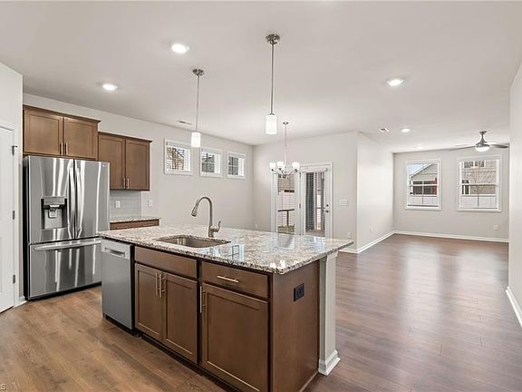 Welcome to this charming cottage-style ranch home in Clemmons! The open floor plan flows seamlessly, ideal for living or entertaining. The kitchen features granite countertops, a tiled backsplash, stainless steel appliances, an oversized island, a large single-bowl sink, and a walk-in pantry. The primary suite offers a spacious bathroom with a double vanity, storage, a shower with a built-in seat, and a large walk-in closet. The home includes blinds throughout and a walk-in laundry room. The home also has solar panels, for sustainable living reducing energy costs, and are fully paid off. Enjoy the covered screened patio with a ceiling fan or enjoy a cup of coffee on the front porch. This beauty is located in The Landing at Rocklyn subdivision with pool and playground access, you better hurry, homes like this don’t stay on the market long!