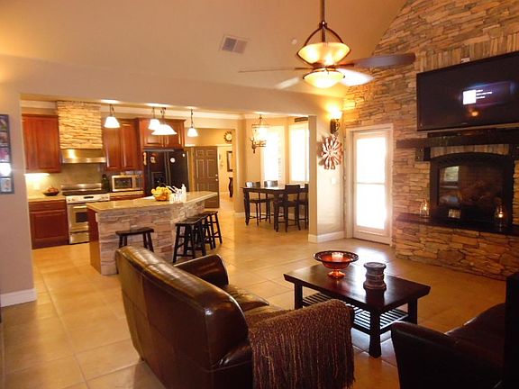 Gorgeous Home and Grounds!! Experience exceptional owner pride throughout this Deer Creek Estates property! Just over two acres & 2703 SF that shows like a model home! Tile flooring, granite, rock & cool natural colors. Granite & tile pops in the Large kitchen & nook area. Living area features a floor to ceiling rock accent wall, hearth & fireplace. Formal dining room, interior laundry & huge upstairs bonus room are a plus. The bedrooms are large and inviting, the master is a retreat with beautiful en suite bath with a jetted tub, stall shower, double vanity & spacious walk in closet. Outdoor life is good here! Totally landscaped around entire home, huge patio areas, trees, storage shed & enough room for a pool!