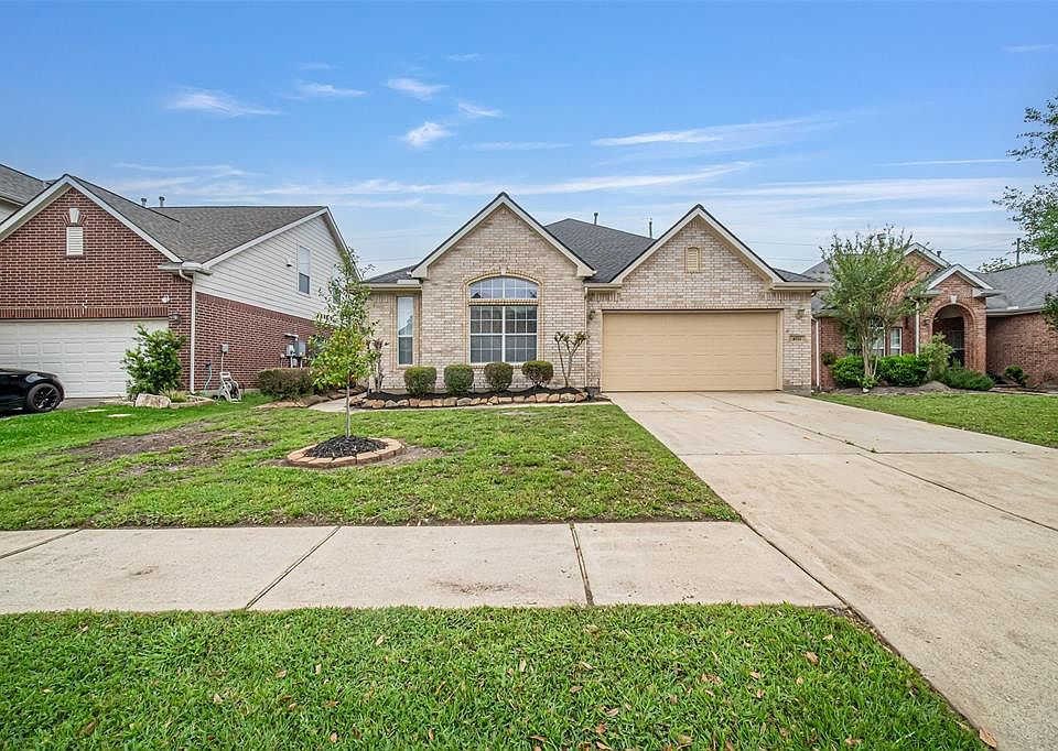 Conveniently situated in the desirable Country Lake Estates, this charming single-story home boasts 4 bedrooms, 2 full baths, and a formal dining room. With an open floor plan and high ceilings, the property features wood floors in the dining and family rooms, tile in the entry, kitchen, and hallways, and cozy carpet in the bedrooms. The kitchen is equipped with a granite-topped island, 42'' cabinets, and included refrigerator. New blinds and fresh paint enhance the interior, while the spacious backyard and sprinkler system provide outdoor comfort. New Carpet.
