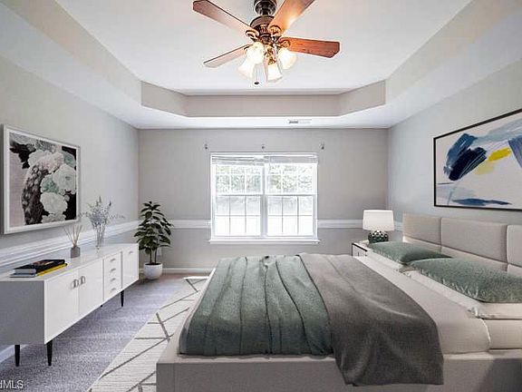 Welcome to this gorgeous neighborhood! Terrific 4 bedroom and 2.5 bath home with a 2 car garage. You’ll enjoy preparing meals in the gorgeous kitchen with sleek counters, stainless appliances, and beautiful spacious cabinetry. Flow into the living room featuring a cozy fireplace, perfect for entertaining. The main bedroom boasts a private ensuite. Other bedrooms offer plush carpet, ceiling fans, and sizable closets. Entertain on the covered back patio, perfect for barbecues. Don't miss this incredible opportunity. This home has been virtually staged to illustrate its potential.