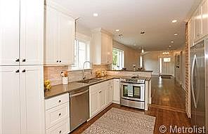 Sunnyside at it's BEST. This home was renovated in 2014 and is cool. It is an open floor plan, with vaulted ceilings in the foyer and a contemporary flair. There is new carpet, hardwood floors through out and exposed brick. There are south facing windows through out the main level so the house is airy and bright. The living room and eating space are open to the kitchen. The kitchen has a farm house sink, Caesarstone counter tops, a breakfast bar and a side by side refrigerator. The study can also be a bedroom and the dining room has a vaulted ceiling, doors to the deck and yard and can also be a conforming bedroom. The master suite has a full bathroom en-suite and a walk in closet. The basement is finished to include a family room, bar area, bedroom, full bath and a large laundry room. The yard has an outdoor patio, new landscaping, an over sized two car garage with shelving for your gear and two off street parking places.