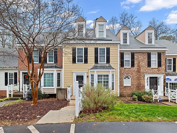 This inviting townhome offers 2 bedrooms, 2 full baths, and 2 half baths, blending comfort and functionality across three levels. The family room welcomes you with a large bay window that fills the space with natural light and a cozy wood-burning fireplace that creates a warm focal point. The eat-in kitchen provides ample storage and an easy flow for everyday living, complemented by a spacious pantry conveniently located in the laundry room. Upstairs, both bedrooms feature their own private bathrooms for added privacy and comfort. One bedroom includes double closets, while the other offers direct access to the third floor—a flexible bonus space perfect for a private office, hobby room, or quiet retreat. A screened-in porch at the back of the home provides a relaxing spot to unwind and enjoy the outdoors in comfort. The Brittany Woods community offers fantastic amenities, including a pool, tennis courts, and a playground for enjoyment. Located just off Glenwood Ave, this townhome provides easy access to both I-540 and I-440, putting you just minutes away from all the conveniences you need.