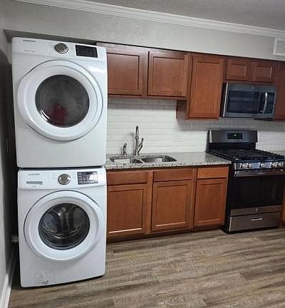 - Included: Dryer, Microwave, Range / Oven, Washer