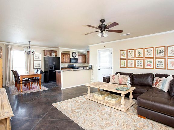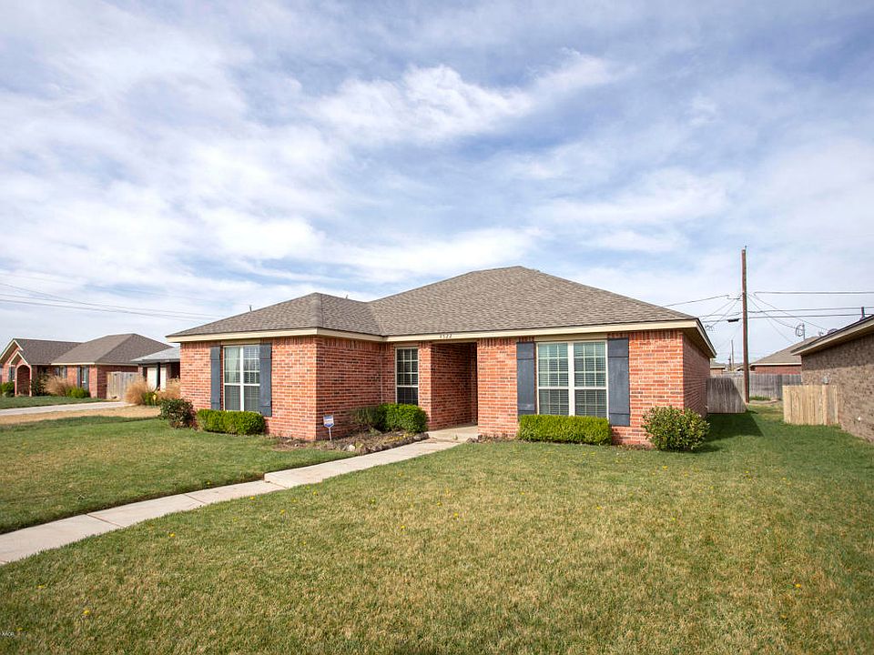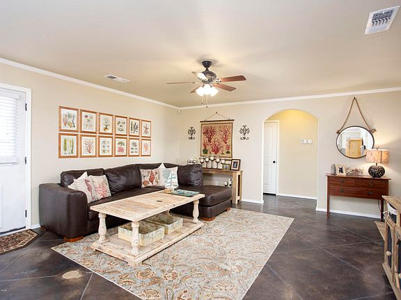 Adorable home with all the upgrades! Homeowner had an eye for detail when building this custom Tradewinds home! Beautiful open floor plan great for entertaining with a nice sized kitchen. This home boast solid surface flooring throughout, isolated master bedroom and bath, and tons of natural light! Both spare bedrooms have great walk-in closets. Backyard features a nice covered patio great for grilling.