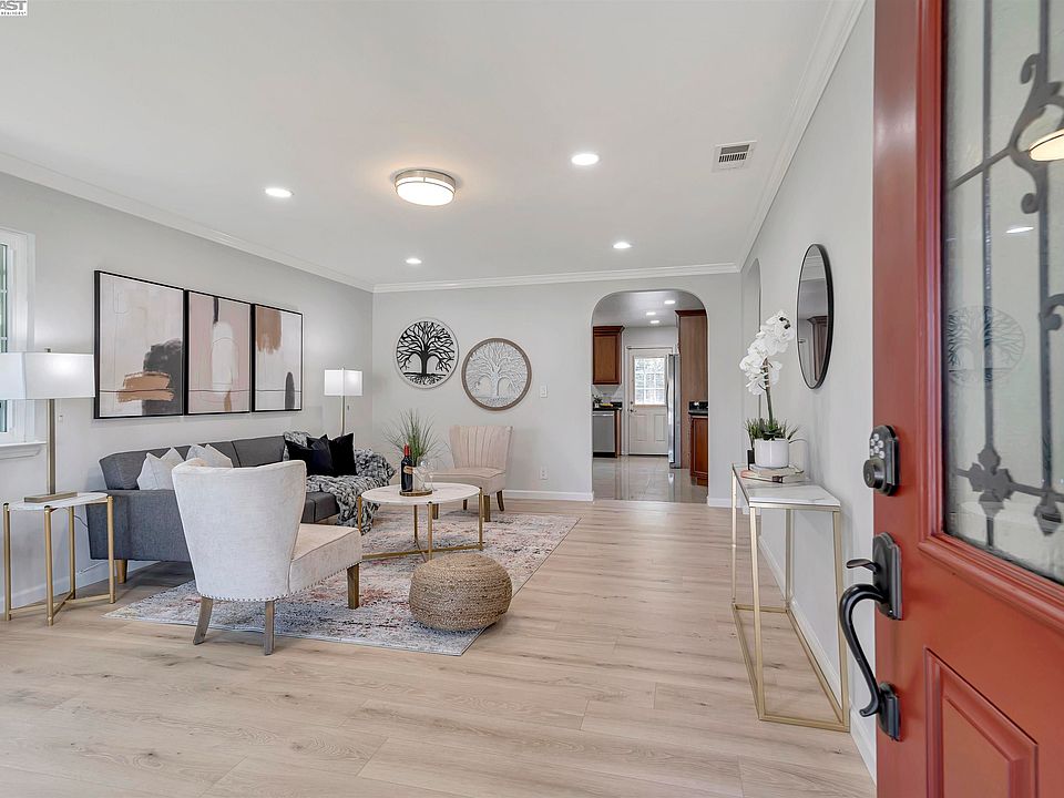 This spacious, move-in ready home boasts 3 bedrooms and 2 baths. Situated perfectly on a quiet family-friendly street with ample room for parking. The moment you enter, you're greeted by a vast and spacious floor plan that is extremely warm, inviting and with lots of natural light. Some of the luxury finishes include updated Bathrooms w/ Tile Flooring, newer kitchen with custom cabinets, LVT waterproof flooring throughout, crisp newly interior paint & trim, LED recessed lighting in all rooms. Tankless water heater, EV charger, central heat & A/C, modern exterior stucco finish and extra wide stamped cement driveway. The private backyard is generous in size, ideal for those who enjoy entertaining guests, or just like to unwind outside after a long day. Mature fig and lemon trees surround the property. Conveniently located near major shopping, dining, and 880 Hwy, 84/Dumbarton Bridge, BART, Tesla, and Silicon Valley. This is a must see!