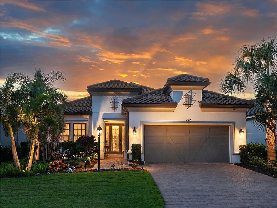 Embrace the pinnacle of luxury living at 4522 Terrazza Court, a residence that flawlessly combines elegance, functionality, and comfort behind the gates of Esplanade Golf and Country Club in Lakewood Ranch. Upon entry, you're greeted by a beautiful foyer featuring a custom tray ceiling and crown molding, setting the tone for the opulence that awaits within. The great room exudes sophistication with a coffered ceiling refined crown molding, and a large bank of pocketing sliders, offering an inviting atmosphere for relaxation and socializing. The adjacent dining room effortlessly blends with the open living room and kitchen, creating an ideal space for gatherings. The kitchen is complete with quartz countertops, white cabinets, and a custom tile backsplash that perfectly harmonizes with the neutral tones of the walls and countertops. It boasts ample cabinet space, stainless steel GE appliances, and a substantial island with seating, accompanied by a breakfast area with sliders to access the lanai for indoor-outdoor living. A well-appointed office space with crown molding, a large window, and pocketing double doors. The primary bedroom epitomizes luxury with a tray ceiling and bay windows enhanced by custom trim. Gorgeous bathroom that features a spacious shower, an elongated vanity with seating, a private water closet, and an expansive walk-in closet, creating a private retreat within the home. The guest bedrooms offer abundant natural light through sizable windows, complemented by neutral carpeting and generously proportioned closets. Two guest bathrooms ensure both comfort and convenience for guests. The oversized lanai boasts an outdoor kitchen with a grill, beverage cooler, prep sink, granite countertops, and chic grey cabinets. The lanai also holds a luxurious hot tub with over 70 jets and ambient lighting sets the scene for relaxation, accompanied by a Dave Pelz® putting green, for golf enthusiasts to perfect their short game for the community’s top-rated golf course. Remote hurricane shutters on the lanai and hurricane shutters for the windows. A spacious laundry room offers and a 3-car tandem garage with epoxy flooring. Other noteworthy features include a lightning protector in the breaker box, a portable generator converter plug on the exterior, a built-in HALO LED air purifying system, a water softener, and gutters encompassing the entire house. Please note, bedroom drapes and the foyer light are excluded and security cameras are surrounding the exterior of the home. As a resident of this gated, resort-style community, you'll have access to a world of amenities, including golf, tennis, pickleball, a fitness center, wellness classes, pools, spas, and multiple dining options. Plus, this property includes a full golf membership, making it the pinnacle of luxury living in Esplanade Golf and Country Club. Don't miss this rare opportunity to make this luxurious dream home your own. Schedule your private viewing today.