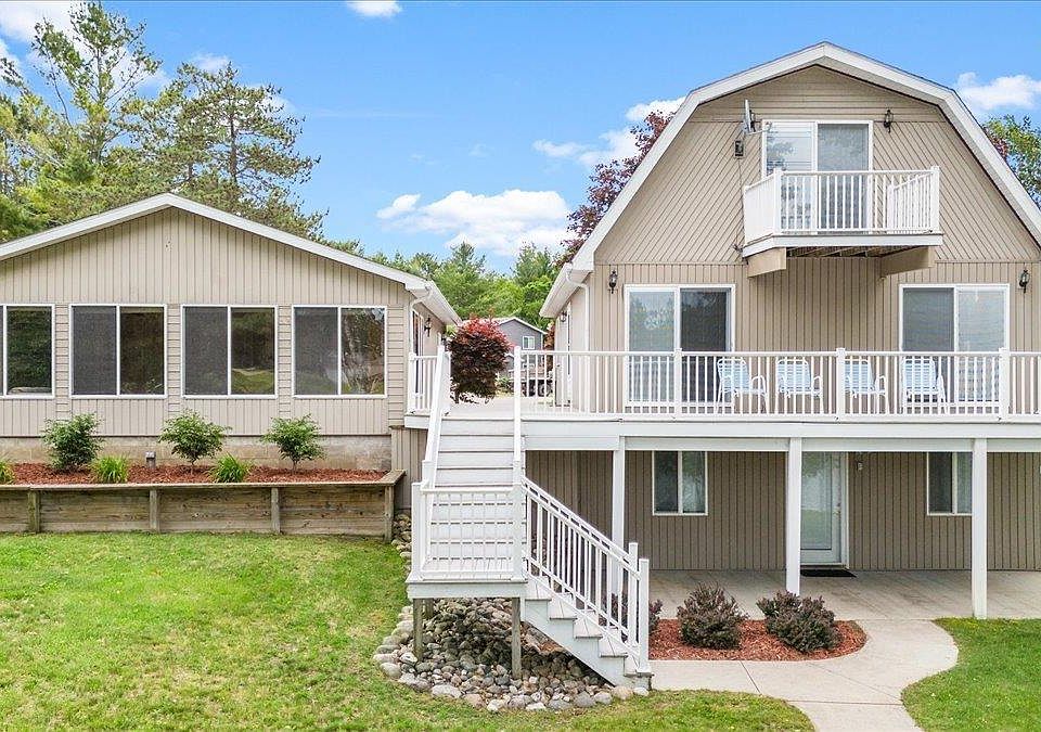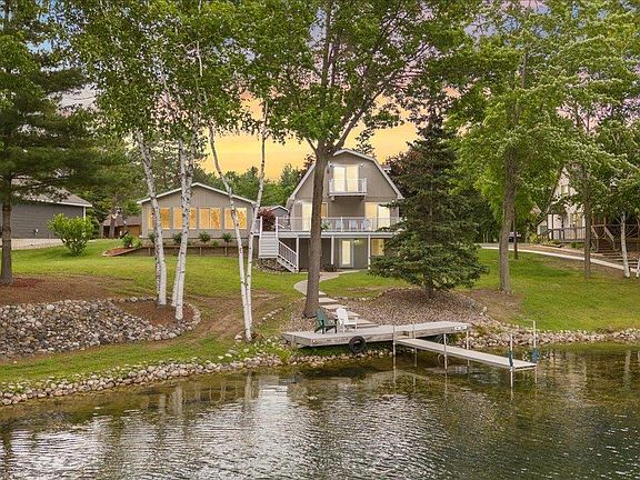 Enjoy the views of beautiful Lake Lancer from this stunning lakefront property that offers 165 feet of waterfront! The yard is beautifully landscaped with various ornamental trees for beauty and shade; gradual slope to the waters edge, landing pad at the end of the dock and sandy beach frontage . Custom gutters on the house, composite decking, and lots of windows to let in tons of natural light. The garage has a spacious bonus room for hanging out and playing games. Pride in ownership shows in this home, all hardwood flooring, the kitchen has beautiful updated slow-close custom kitchen cabinets, large kitchen island and stainless steel appliances. Newer furnace, ample storage throughout, walkout basement with concrete patio, gas fireplace and an additional gathering room or man cave! Sugar springs amenities include 2 all sports lakes, 15 beach clubs, an 18-hole championship golf course, 9 hole course, and a golf simulator. Indoor heated saltwater pool, fitness center, restaurant and pub, tennis courts and a grass airstrip for fly-ins. All furnishings stay, just bring your personal belongings and enjoy!