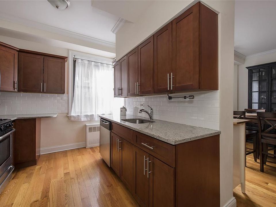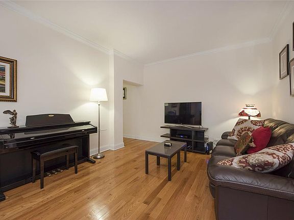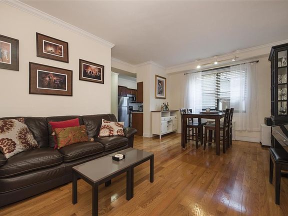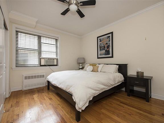 Located on the Ground Level of the beautiful Fort Tryon Gardens 7 building enclave, sits this well maintained Postwar gem. Built in 1951, it exemplifies the brilliance of its day with contemporary architecture and modern design. Upon entry, this quiet apartment boasts a stunning separate kitchen with cherry cabinetry, stainless steel appliances, full size dishwasher, microwave, and granite countertops. The kitchen flows effortlessly into a spacious living room and dining room. The unit has 10 foot high ceilings with superb craftsmanship including smooth skim coated walls, floor to ceiling crown molding, and charming views of the Fort Tryon Grounds from each window within every room. A long hallway separates entertaining and family time from more respite moments within the spacious bedrooms. Greeted first by a windowed full bathroom on the left with pedestal sink, the Queen sized room offers the gift of possibility to be used as a bedroom, nursery, or study with its sprawling floor to ceiling shelves. The master bedroom offers ample space for a king size bed, bedside tables, armoire, and a double-sided closet. In addition, there are sizeable closets near the kitchen and bathroom. Amenities include a 24/7 laundry facility, bike room, private storage (fee), manicured flower garden, and resident supers and porters. There are two subway lines very close by; the express A line is on the same block, with the 1 line one block away, allowing for swift access to all parts of Manhattan and major transit hubs. Entrances to the famous Fort Tryon Park with the Cloister museum and dog runs are literally within a few blocks of the front door. This Dream is Conveniently Located Close To All Local Amenities Such As The Post Office, Cafes, Restaurants, Supermarkets, Local Shops, and is the definition of sophisticated Upper Manhattan living.