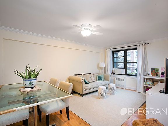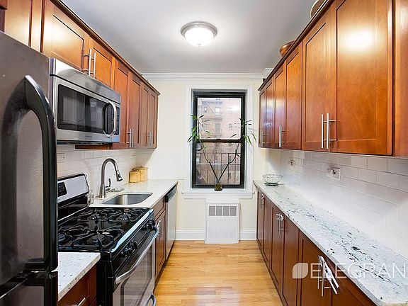 Fort Tryon Gardens is a tranquil city retreat for smart buyers who are looking for larger spaces and exceptional value. Surrounded by the beauty of Fort Tryon Park and located next to the A express train, living in Fort Tryon Gardens offers you both beauty and Manhattan convenience. This completely renovated large one bedroom with South, East, and North facing windows provides the light and layout that makes for a bright, happy home. The full-size kitchen boasts dark cherry wood cabinets, stainless appliances, and granite countertops. There is an option for an eat-in kitchen or plenty of space for a full-size dining table, giving owners the flexibility to dine alone or entertain. The oversized bedroom with corner windows overlooking green space has two closets, can easily fit a queen size bed, bedroom furniture and accomodate a work area. Features such as new wood floors, crown molding, overhead lighting, and a new tiled bathroom deliver a refined, move-in ready home. With very low maintenance, a 24/7 laundry facility, bike room, manicured flower garden, live-in Super, porters, and on-site management, this home is a very smart investment. The Hudson Heights neighborhood is filled with awe-inspiring nature, miles of bike/walk/jog paths, and is home to Manhattan's Ft. Tryon Park and the beautiful Cloisters Museum. This apartment is also just a 5-minute walk to rows of restaurants, specialty coffee shops, pubs, and hot spots along the Hudson River like La Marina NYC.