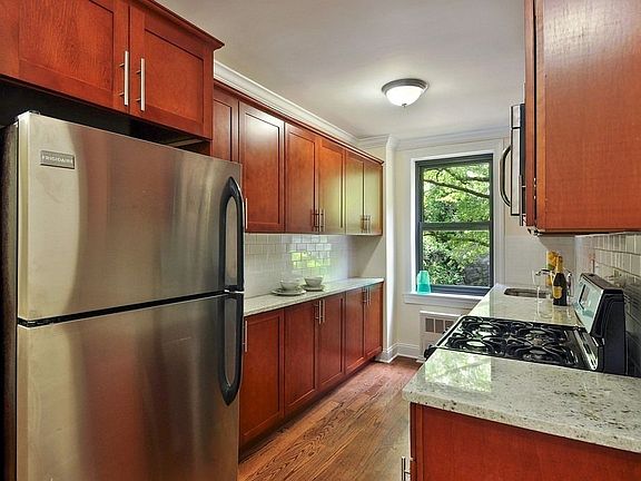 Garden View Property!* 10% DOWN ALLOWED SPONSOR UNIT-NO AFTER CLOSING ASSETS REQUIRED-Spacious, super bright, newly renovated 1 bedroom apartment. This corner unit has tons of sunlight from every window. The renovation was just completed with skilled craftsmanship and luxurious materials. The unit has ample closet space, hardwood floors, and crown molding throughout. Both bedroom and living room are cable-ready. The living room is overlooking well-manicured flower/tree garden, the south facing bright bedroom is overlooking fruits trees. The separate, windowed eat in kitchen has gorgeous one piece granite counter tops and it is equipped with all high-end, stainless steel appliances, including a full size dishwasher. There are two major subway lines very close by (Express A line is directly across the street from the property and the 1 line is one block away). This financially solid co-op is offering very low maintenance, 24/7 laundry facility, bike room (fee), storage (fee), parking garage on site (fee) flower gardens, on-site resident super, several porters to manage 350 unit co-op (7 buildings with each elevators and laundry rooms). 4489 Broadway is situated in the heart of Hudson Heights next to breath-taking Fort Tryon Park with Hudson River views and much more.
