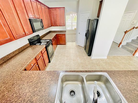 Remarkable renovated rental property that blends spacious living with stylish design in an inviting neighborhood. This expansive home boasts 5 bedrooms and 2.5 bathrooms, offering a generous 2,800 square feet of thoughtfully designed space. The exterior features a lovely combination of beige siding and stone accents, complemented by a convenient two-car garage, providing both aesthetic appeal and functionality. As you step inside, you are immediately welcomed by a cozy living room adorned with soft grey carpeting, creating a warm and inviting atmosphere perfect for relaxing or entertaining. Continuing further, you'll discover a well-appointed kitchen that will delight any home chef. It showcases rich brown cabinetry, modern black appliances, and a dual stainless steel sink, combining both beauty and practicality. Adjacent to the kitchen, the dining room features tasteful tile flooring, making it an ideal space for enjoying meals with family and friends. The first floor also includes a spacious extra half bathroom, ensuring convenience for guests and family alike. Ascending to the second floor, you'll find a series of generously sized bedrooms, each featuring plush beige carpeting and ample natural light. The bathrooms are well-designed, equipped with a combination of tub and standing shower options, along with long sinks in the hallway for added convenience. This home also includes a washer and dryer located in the hallway, providing additional functionality; please note that they are to be maintained as-is. The master bedroom is a true haven, featuring two expansive walk-in closets and a stunning private bathroom that offers a perfect retreat for relaxation. Jetted tub in the master bedroom, with a washer and dryers in the second floor. With its abundance of space, attractive features,this home is an exceptional opportunity to create lasting memories. Don't miss your chance to call this beautiful residence your new home! $20 Technology Fee and one-time $125 Admin Fee