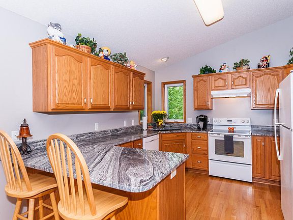 Lovely fully finished 2 story with a beautiful private back yard. Spacious 4 bedroom, 3 bath with a private master suite. Huge eat-in kitchen with granite counters, fresh paint, hardwood floors, pantry and a new sink. Living room with gas fireplace and built-ins! Main floor laundry, ample storage space with a work shop area. Walk-out to a peaceful patio with a fully fenced yard and mature trees., Directions Cty 22 then turn west onto 7th St NW, left on Manor Park Dr, Right on to Manorwoods Pl. NW