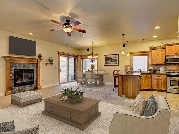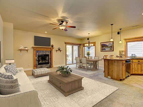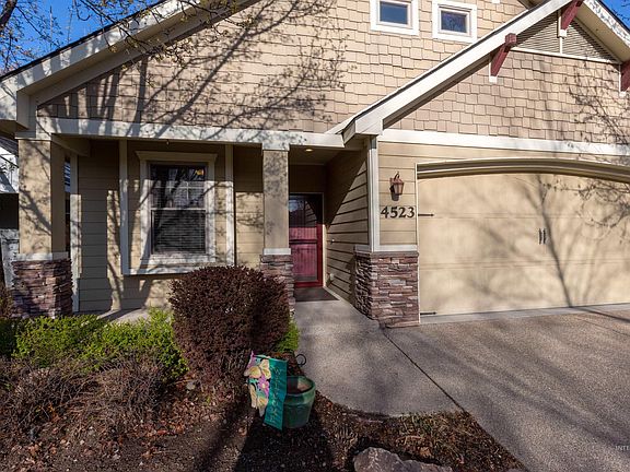 Maintenance free living at its finest. This craftsman style home is tucked back in a quiet community, yet still close to services, downtown Boise, golf course, the greenbelt and river. All exterior landscaping is taken care of by the HOA. The home's layout is ideal, great room open to dining & kitchen with bedrooms separated from each other. Great room w/ gas fireplace, entire home has wood windows and sliders, kitchen with granite counter, craftsman style cabinets, tile flooring, and gas range. Dining with back slider opens to an extensive patio area, perfect to enjoy quiet evenings. Primary bedroom is spacious, lots of windows that allow natural light, large primary bath with dual vanity, corner soaker tub, shower, & walk in closet. An additional covered patio area is off the living area - cozy and ideal for morning coffee. No rear neighbors and mature landscaping offer additional privacy. Warm, neutral colors and classic craftsman finishes makes for a stylish home with a timeless look.