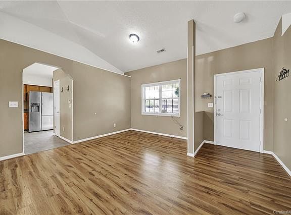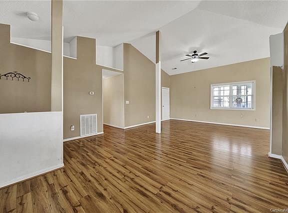 Welcome to this private Rock Hill, SC home on 2 acres! This 3 bedroom, 2 bathroom southern charmer has an open living room with laminate wood floors, vaulted ceiling, and an open flow to the dining area. The kitchen features an open pass through window, storage cabinets, and a breakfast nook with adorable bay window. Enjoy time out on the deck from the main living area, or private access from the master suite! The large master bedroom features vaulted ceilings and an ensuite bathroom with dual sinks. The two remaining spacious bedrooms share a full bath. We love the large, private, flat yard this home has, as well as the detached 2 car garage, perfect for extra storage or a work shed. Ask us about our Zero+ Mortgage Plan today!
