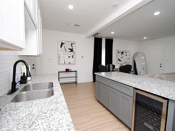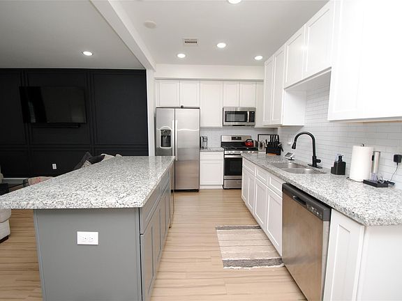 The open-concept layout showcases a large island kitchen with quartz countertops, custom cabinetry, and stainless steel appliances, flowing seamlessly into the main living area, perfect for entertaining. Elegant finishes include custom tile flooring, plush carpet, and thoughtfully designed details throughout.