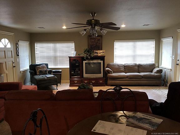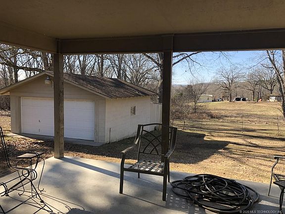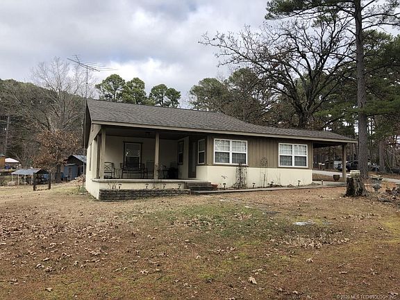 Home has been totally remodeled & is only .24 of a mile from Lake Eucha. Has open floor plan w/two bedrooms both have nice walkin closet space. Master bathroom also houses the washer & dryer. Half bath is just off the living & kitchen area. Nice large covered porch out back. Tall pines line the drive to the property. City of Tulsa property adjoins the property to the North all the way to the Lake.