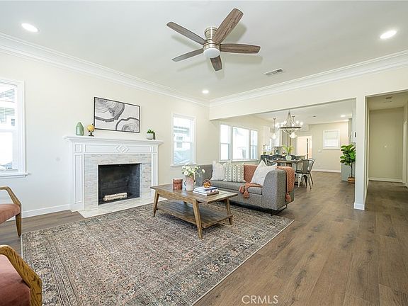 Stunning UPDATED 3 bed 2 1/2 bath home on a tree lined street. This home has been beautifully renovated and offers a spacious open floor plan. The kitchen features custom new cabinets, sleek counter tops, full tile backsplash, stylish fixtures, and new stainless-steel appliances. All the bathrooms have new vanities, and fixtures with custom tile work in both the hall and primary bathroom. Other upgrades include new HVAC system, upgraded electrical panel, new energy efficient windows, new doors, fresh interior/exterior paint, new exterior siding, luxury flooring in the living room, dining room, bedrooms, kitchen and laundry, new plumbing and light fixtures throughout, new ceiling fans in the bedrooms and living room, new water heater, new garage door and motor. Other features include indoor laundry, decorative fireplace in the living room and small basement area for additional storage. There is a two-car detached garage and long driveway offering additional off-street parking. The detached garage and spacious backyard offer possible ADU potential. Buyer to verify all building codes and ADU guidelines with the city. The enclosed backyard has a cement patio area and spacious lawn perfect for fun and entertainment. Tax rolls show different bed and bathroom count.