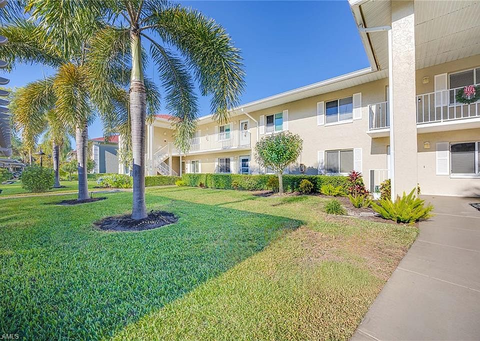 Welcome to a carefree, coastal living in this beautifully appointed fully furnished first floor end unit. Located in the golf community of Royal Wood. This highly desirable unit, offers three bedrooms, two full baths, large living room and dining room. The well equipped kitchen offers, ample cabinetry, a breakfast nook, and a convenient pass-through to the dining room and living room spaces. Your golf course view is right out of your private screened lanai. The primary suite includes a walk-in closet, with en-suite bath room for added privacy new to the unit are: storm doors, front and back installed 2025, hurricane impact Windows installed 2024, new hot water heater installed 2024, new air conditioning system installed 2023. Royal Wood is a sought after bundled golf community known for its beautiful manicure grounds, resort, pool, tennis, pickle ball, and more located minutes from downtown Naples and the world, class beaches, shopping, and restaurants.