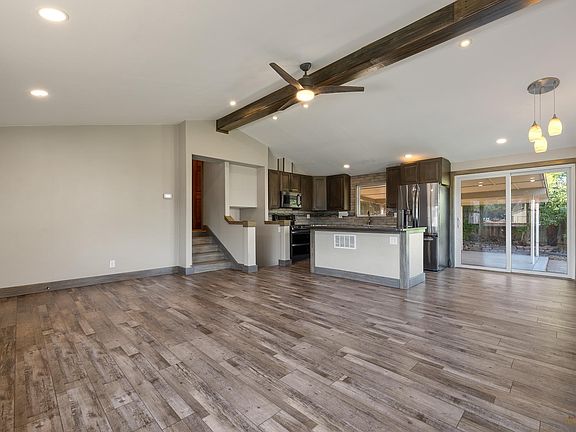 Welcome Home! This home is located in a desirable neighborhood close to schools. You are greeted by great curb appeal as you pull up with the large front porch and oversized 3+ car garage. Walk inside to an updated kitchen with beautiful cabinetry with soft close drawers, granite counter tops, tile back splash, stainless steal appliances, and updated flooring and trim through out the main level. Upstairs you have three bedrooms and a bathroom with tile surround shower/tub. Downstairs you have your 4th bedroom, bathroom and a spacious family/theatre room! Out back you have a huge covered patio and flat back yard that is fully fenced. Call your favorite REALTOR to view this home! Listing agent related to sellers.