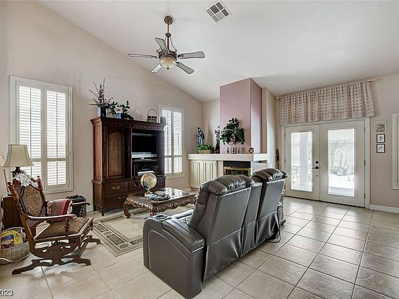 Welcome to your Spacious OASIS! This 3 bedroom, 2 full bath home has all you need and more! As you enter the home, you are welcomed by a LARGE LIVING ROOM/DINING ROOM combination and many bright, airy windows with custom PLANTATION SHUTTERS throughout to keep the Vegas heat outside!! This lovely OPEN CONCEPT home also has a warm & cozy FAMILY ROOM with FIREPLACE that leads to GOURMET KITCHEN: STAINLESS STEEL appliances, GRANITE countertops, an ISLAND with STORAGE, AND a PANTRY CLOSET... You want more?? DOUBLE DOOR access to your POOL PARADISE backyard~ featuring SPARKLING, INGROUND POOL & elevated SPA, COVERED PATIO, ready to use BBQ stub, and EASY TO MAINTAIN landscaping. Primary bedroom offers FIREPLACE, 2 CLOSETS, DOUBLE SINKS, and separate SHOWER and TUB. Let's not forget about the 3 CAR GARAGE with cabinets for loads of STORAGE! This home is near SEVERAL LARGE SHOPPING CENTERS and Silver Mesa RECREATION CENTER! Easy access to freeways, bus lines & North Las Vegas Regional Park!