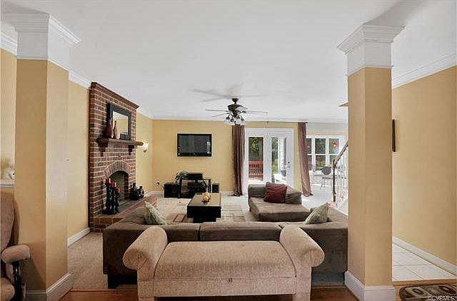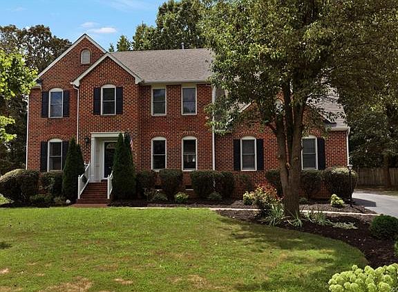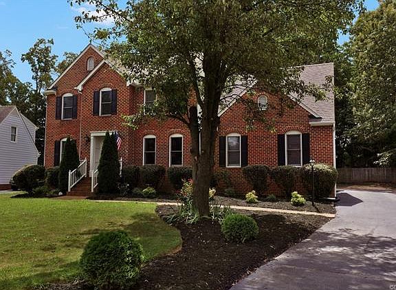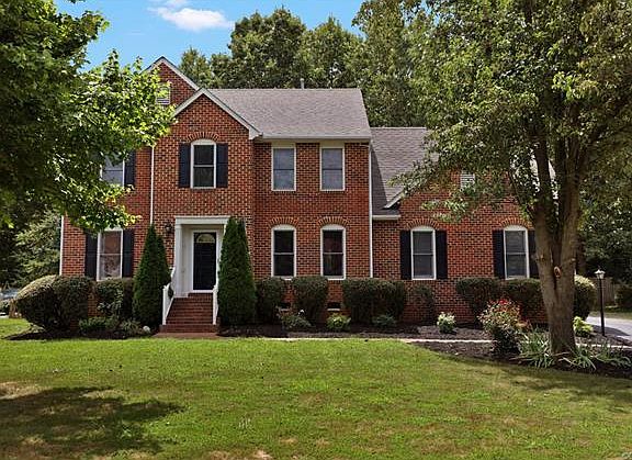 This STATELY 4 bedroom, 2 and 1/2 bath colonial in Glen Allen is just minutes from Short Pump and easily accessible to just about anywhere. The foyer beckons you with wood floors that span its width and flows into the impressively appointed dining room with wainscotting, crown molding and chair rail.The living and family rooms open to each other and offer no spared detail- columns with built-in speakers, brick fireplace with gas insert and new carpet in the family room area. Entertaining is sheer delight in this home. Sip your coffee in the morning room with vaulted ceiling as the sunlight splashes against your face while you gaze pensively over the landscaped back yard. This room opens to a functional kitchen with cherry finish cabinets and ceramic tile, completing the wonderful open first floor plan. Climb real wood floors to be greeted by the impressive hallway wainscotting. The copious master invites you to a relaxing soak in the Jacuzzi tub. It also features a stand-up shower, double sinks and plantation shutters. All other bedrooms are generously sized. Complete with second floor laundry,long paved driveway, outdoor speakers and irrigation, this one is worth seeing today.