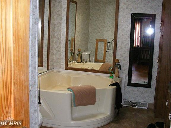 Large home (double wide) sitting on 1.46/ acres in rural setting. Out of town but easy access and close to Rt.316. Home includes 1960 sq ft of living space, wood burning fireplace in living room. Master includes garden tub. No appliances included with this sale. they belong to tenants. Home needs some work but can be a great home at a good price.. Very large detached garage, also a finished room accessed off back deck can be used as an office or studio. Double wide is placed on Poured pier pads and has hurricane straps.