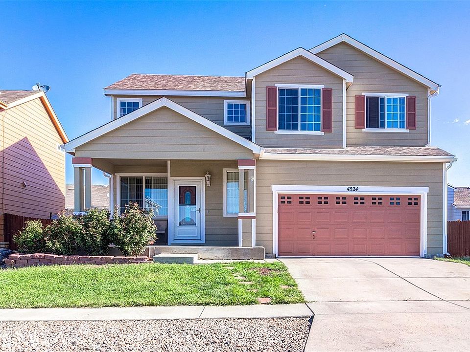 Exquisite sunlight-filled 4-bedroom home in Millers Crossing with soaring two-story ceilings, warm double-sided fireplace, pet-friendly fenced yard with a water feature and storage shed, and an excellent location near military bases and District 11 schools! This exceptional home offers a beautifully designed open floor plan, spacious living and family rooms with vaulted ceilings, tiled kitchen with pantry and appliances, dining area opening to a huge patio and rear yard, and a gas-log fireplace perfect for cool Colorado evenings. Additional home features include central A/C, main level laundry room, ceiling fans throughout the home, window coverings, rear yard water feature and storage shed, and an attached two-car garage. Offering comfort, easy living, and convenience to the Powers corridor, this gem is not to be missed!