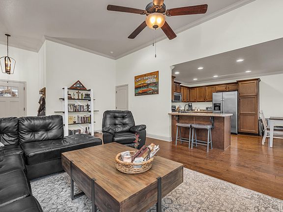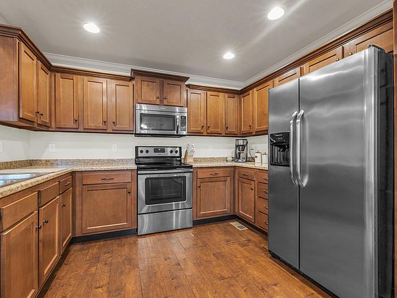 Built in 2016, this one level home is complete with brick finishes and a lovely floor plan with vaulted ceilings and wood flooring throughout. Enjoy the open kitchen with bar seating and separate dining area. New owners will enjoy the spacious primary bedroom in the back of the home with a full bathroom and walk-in closet.