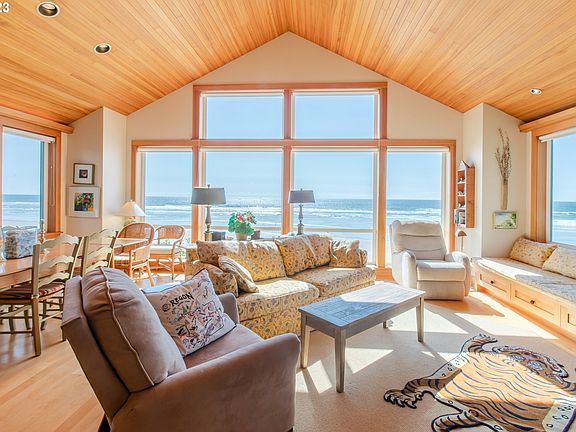 With an ideal balance of indoor and outdoor entertaining space, this secluded beachfront compound was built for weekend getaways with friends and families. Stroll down the beach into town for dinner and then escape back to the peace and quiet of Tolovana Park for late night bonfires. Stretching down from Logan Ln towards the Pacific, there is hardly an inch on the property without a world class view of the ocean. Descend from the street through terraced garden beds and spectacular pine trees towards the gravitational center of the property: a +1,000sf deck stretching westward towards the ocean and spanning nearly the entire frontage of the lot. Hedges and topography combine to create a unique combination of privacy and accessibility. Expansive and unobstructed views of Haystack Rock to the north Silver Point to the south. Warm, natural hues enhance the beauty of the Oregon Coast and floor to ceiling windows perfectly frame Haystack Rock and Silver Point. Crack open a book, grill up lunch and watch the sun fall behind the horizon from the deck. Just a single flight of stairs from the deck, you'll feel the sand beneath your feet and discover tidepools, opportunities for birdwatching, and endless stretches of walkable beaches. Situated at the south-end of Cannon Beach, Tolovana Park provides easy access to hiking, shopping, cycling, whale watching and fishing. Keep an eye out for the elk. Also offers excellent potential as a vacation rental. A more special property you will be hard pressed to find. Schedule your private tour today.