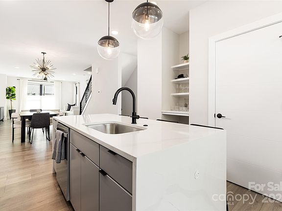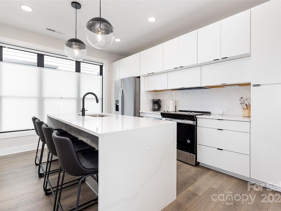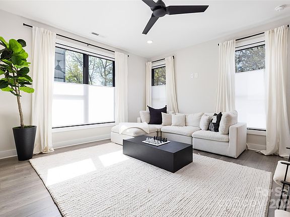 Like new move in ready end unit townhome in Charlotte’s booming LoSo neighborhood! This home features a striking modern exterior, open floor plan with tons of windows for natural light, 3 beds and 3.5 baths, 2-car garage, a roof deck for entertaining and more. High end finishes throughout and further elevated with upgrades including LED puck lighting in all bedrooms, under cabinet LED lighting, black lighting, plumbing, hardware, and plumbing accessories, hardwood floors throughout, quartz waterfall edge in kitchen, top down bottom up blinds and an electric car charging outlet. Enjoy the convenience of modern city living. Walking or bike to nearby shops and breweries, or hop on the railway’s Blue Line for a quick trip into South End & Uptown. Built by 2023 Charlotte Builder of the Year, Copper Builders. With no rental restrictions, this professionally designed and furnished property also presents a rare turn-key opportunity perfect for short term, mid term, and long term investors.
