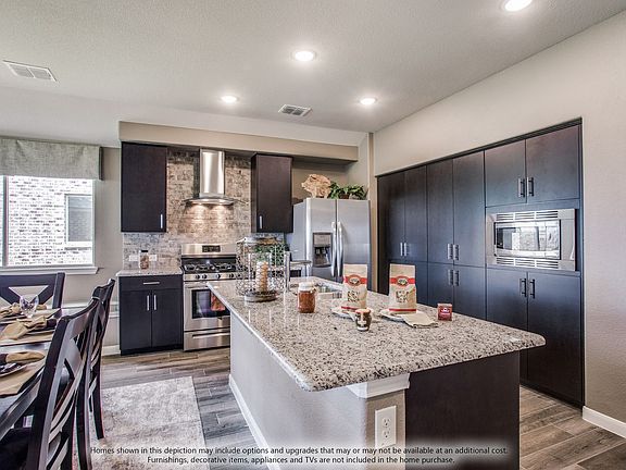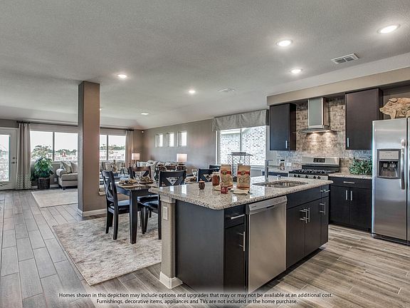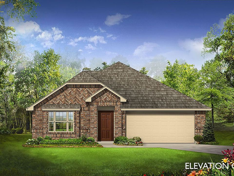 Redbud plan by Bloomfield features an open Family & kitchen and 4 large bedrooms.. Brick front elevation complemented by fresh landscaping and an upgraded 8' front door. Sits on OVERSIZED lot! Kitchen is a stunner and made for gathering with a large center island perfect for barstools, Granite counters, flat-panel cabinetry with pulls, and SS appliances with a matching Glass Vent Hood. Primary offers windows looking out to the backyard and a polished ensuite! Laundry room near the garage with hall tree, multiple energy-efficient features throughout, and more! Call Bloomfield today, or visit the nearby model to turn this blank canvas into your perfect home.