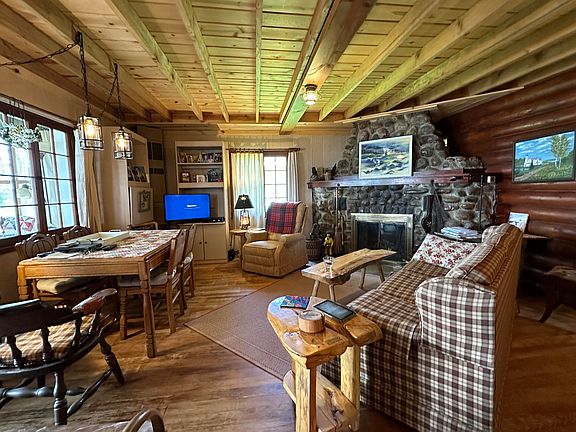THIS IS THE ONE you have been waiting for ~ located on the Back Bay in Brimley MI situated 64 ft waterfront , 800+ feet deep/wooded drive off main rd, Stone steps down to sandy water make for a great location to swim. The dock is included and makes this is a perfect fishing get-a-way! This Cabin features original character that has been nurtured since the day it was built in the early 50's including a very large custom stone fireplace, log interior, hardwood floors ,modern bathroom with washer/dryer. Enclosed front porch is perfect for the rainy day card games or let the kids have an adventure sleeping in the porch under the summer stars. This is the cabin that memories will be made and cherished for generations to come , start your journey to making unforgettable memories- call today