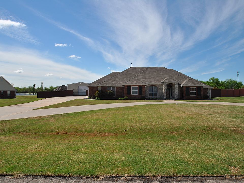 SOLD! Beautiful 1 acre home in gated community with 3 BR, 2 1/2 Bath, large office, storm shelter and shop. Home features newer paint colors, granite counter tops in kitchen, wood flooring, new carpet in master, updated flooring in bedrooms, separate laundry room, central vac system, built-ins in office, security system, video cameras, Christmas Light Package, oversized three car garage and much more. Property features circle drive, electric gate entrance to 1500 sq foot insulated shop with built-ins and three overhead doors, covered back patio, outside speaker, sprinkler system, invisible dog fence and the playset stays with the house. Square footage is based on Appraisal completed in April of this year.