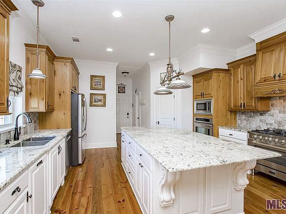 Welcome home to this beautiful 4 bed 2.5 bath Acadian style home in St. Amant. Home sits on over half an acre. Park your cars in the 3 full car garage with AC. Enjoy the large luxury kitchen with granite counter tops, large island, spacious walk-in pantry, stainless appliances and plenty of space to entertain while you prepare dinner. Beautiful antique heart of pine floors throughout the entire home and stairs. Master Suite provides an en suite bath with large soaking tub, separate shower, granite counters and large walk-in closets. Three additional bedrooms that are large in size. Enjoy hanging out in the large game room upstairs. The inside is lovely but you won't believe all that the outdoors has to offer. Beautiful hundred year old oak tree, lavish salt water gunite pool, (35 x 15) with hot tub, (pool has heater and chiller along with a slide and basketball goal), great outdoor kitchen & outdoor stereo system which can be controlled remotely from your phone, rear screened in covered entertaining area, huge driveway that has a professional style basketball goal and also an automatic home generator that runs the whole house and pool. No more being in the dark during hurricane season. This house has it all! Beauty, Class and Relaxation! Schedule your private showing today. You will not be disappointed!!!!